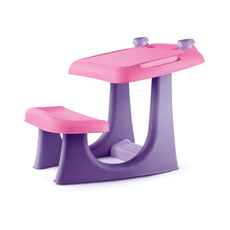 Mesa escritorio para el pequeño de la casa, de tamaño recomendable para el entretenimiento y los deberes. Armable, ligero, resistente y firme al piso. Con compartimientos, espacio para lápices y un gran cajón interno. Un gran compañero en tus juegos y tareas. Y para compartir la aventura con tus niños viene con dos bancos incluidos.