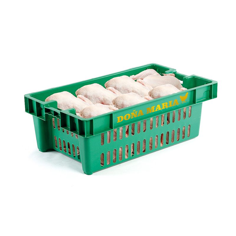 Caja plástica ergonómica de fácil manipulación, ideal para la cosecha, recolección y exportación de arándanos. Con separadores reforzados con orificios para mayor ventilación de fruta. Refuerzo en asas y columnas de la caja, que garantizan un mayor soporte. Refuerzo en la base de la caja, que permite una mejor resistencia ante los fuertes impactos. Refuerzo en cada una de las venas, ofrecen una mayor flexibilidad y resistencia a roturas.