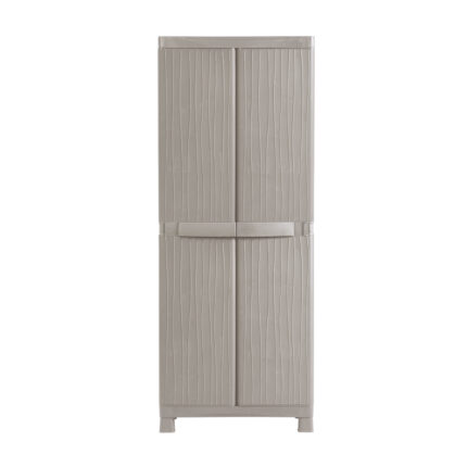 Ropero o armario para el almacenaje y cuidado de objetos o prendas, combina con diferentes espacios gracias a su textura imitación del mimbre ratán. Práctico, resistente y eficiente, con resistentes niveles regulables para la organización.