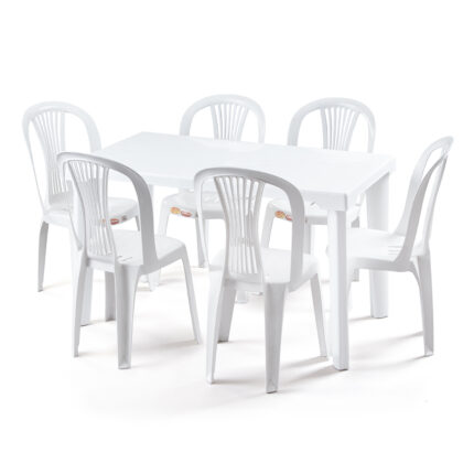 Mesa plástica súper resistente y durable, desarmable, lista para llevar y colocar en cualquier lugar y espacio; ideal para la playa, jardín, piscina, cocina o negocio. Viene con patas antideslizantes y reguladores de altura para mejor estabilidad.