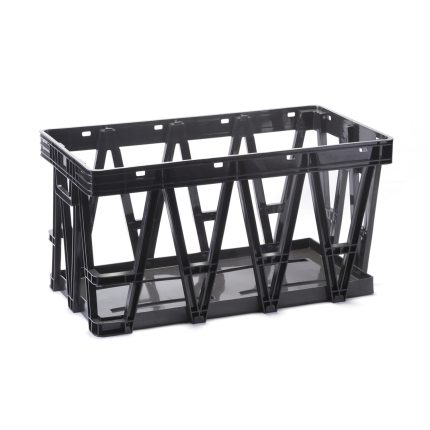 Caja plástica de gran durabilidad y rendimiento ideal para el transporte y distribución de pollos vivos. Fabricado con polietileno de alta densidad y protección UV. Con agujeros en las paredes para mejor ventilación y puerta con mecanismo de alta duración. Estructura resistente y resistencia. Apilables y de fácil agarre.