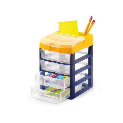 Gavetero compacto para escritorio, práctico y muy útil, de 4 niveles para la mayor organización de tus útiles de trabajo, viene con compartimentos superior en la tapa.