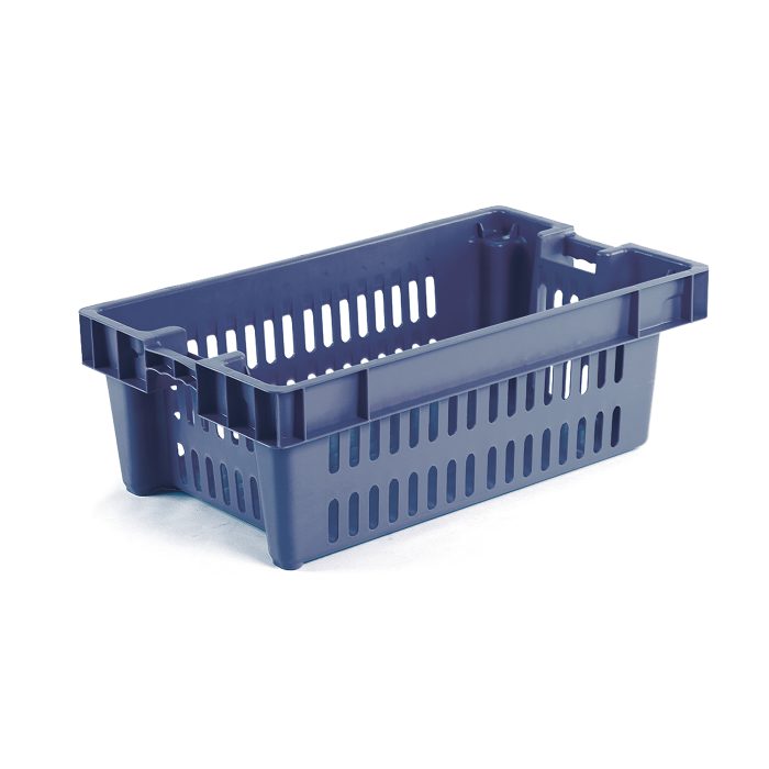 Caja plástica de gran durabilidad y rendimiento ideal para el transporte y almacenaje de productos avícolas. Fabricado con polietileno de alta densidad y protección UV. Con agujeros en las paredes para mejor ventilación.