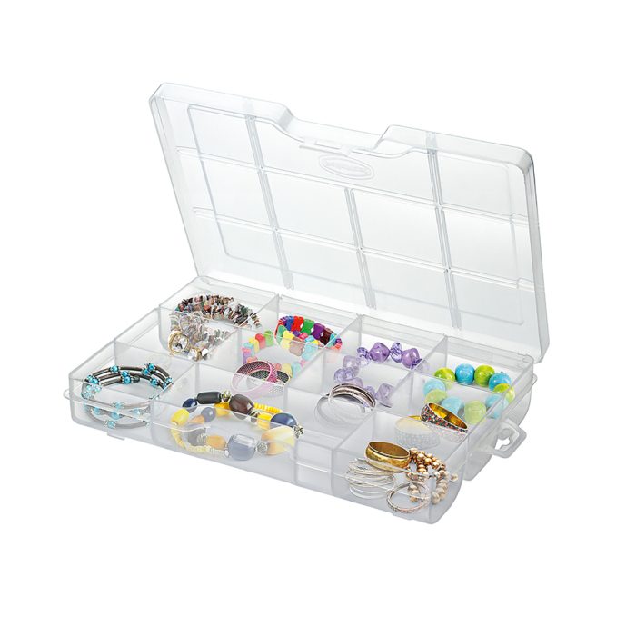Útil y compacta caja con divisiones para la organización de tus objetos mas pequeños, evitando así perdidas, extravíos y revolver tus pertenencias. Resistente y durable, con tapa y broche para más seguridad.