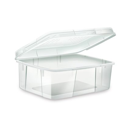 Caja organizadora para accesorios cosméticos, ligero y resistente para el fácil transporte. Con broche, compartimentos en la tapa, bandeja y asa plegable.