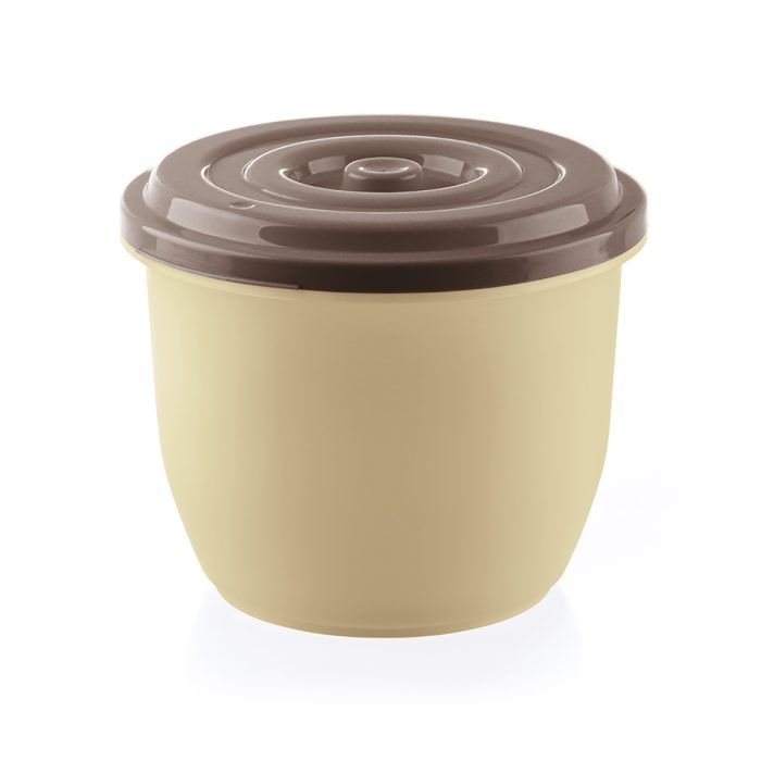 Recipiente plástico durable individual redondo para el almacenaje y la organización en la despensa de la cocina o el refrigerador. Multiusos y herméticos, en diferentes colores que resaltan y gustan.