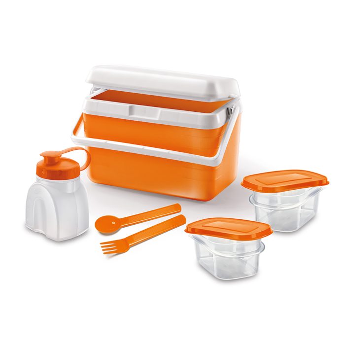 Set para refrigerio completo donde puede disponer de la lonchera, 2 tapers, tomatodo y cubiertos. Conserve sus alimentos por más tiempo y con total seguridad. Ideal para el uso escolar o actividades al aire libre.
